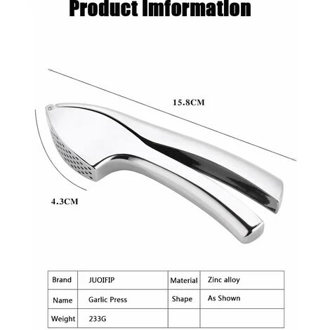 Construction en métal facile à nettoyer : ce presse-ail est fabriqué en alliage de zinc moulé sous pression et il durera longtemps. Il suffit de le rincer sous l’eau courante ou de le mettre dans le lave-vaisselle.