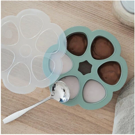 Moule en silicone pour congeler purées et compotes, se démoulent a l’unité. Moule compatible au four et micro-ondes jusqu’a 210° pour préparation de mignardises.