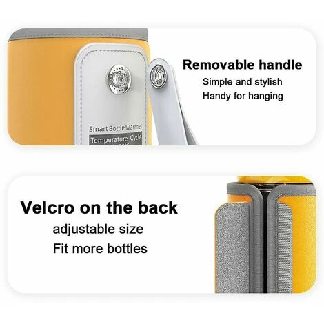 Description du produit Matériau : PU, coton thermo-isolant Taille : 90 mm, 120 mm Bouteilles applicables : convient aux bouteilles d’un diamètre de 6,5 à 7 cm Couleur : jaune vif, vert vif Quantité : 1 pièce Contenu de l’emballage : 1 * couvercle de bouteille isolé , 1 * câble de chargement USB 1. Chauffe-biberon Ce chauffe-biberon chauffe rapidement et uniformément, il peut s’étirer pour s’adapter à la plupart des biberons, il est facile et sûr à utiliser. Biberons applicables: convient aux biberons d’un diamètre de 6,5 à 7 cm. Le velcro à l’arrière peut être ajusté pour s’adapter à plus de bouteilles. 2.Portable et compactConception petite et compacte pour une portabilité et un stockage faciles. La solution parfaite pour les parents pour réchauffer confortablement, en toute sécurité et facilement le biberon pendant la conduite. 3. Conception d’isolation sandwich La conception d’isolation thermique de structure de type sandwich, la conservation de la chaleur et le traitement au feu du noyau chauffant garantissent la sécurité. Le processus de matériau multicouche est sûr et sécurisé. La couche extérieure de la housse de protection est en PU de haute qualité, doux et doux pour la peau, et la couche chauffante vous garde au chaud pendant longtemps. 4. Chargement USB : livré avec un câble USB, il suffit de brancher le câble sur une banque d’alimentation, un port USB de voiture ou un port d’ordinateur portable. La poche supplémentaire du chauffe-lait peut être placée avec une alimentation électrique mobile afin que vous puissiez chauffer le lait à tout moment, n’importe où. 5. Convient à différents matériaux Le chauffe-biberon de voyage portable convient au chauffage de plusieurs matériaux, qui peuvent chauffer respectivement le plastique, le verre et l’acier inoxydable. Pendant le processus de chauffage, la surface du chauffe-biberon portable ne sera pas chaude et la température entrera automatiquement en mode d’isolation lorsque la température atteindra 42, et il supportera une isolation continue de 24 heures.
