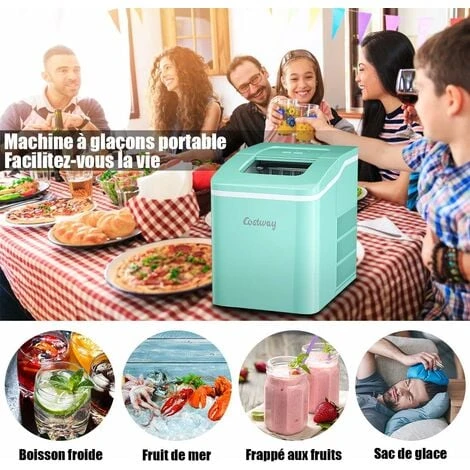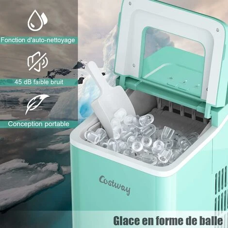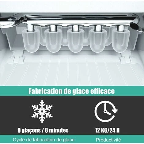 - 【Machine à glaçons efficace】dotée d’une fonction rapide et efficace, cette machine à glaçons portable ne prend que 8 minutes pour fabriquer 9 glaçons arrondis délicieux et à croquer, ce qui vous fait gagner du temps pour préparer de délicieux plats et boissons. Elle peut produire 12kg de glaçons chaque heure pour vous fournir suffisamment de glace.