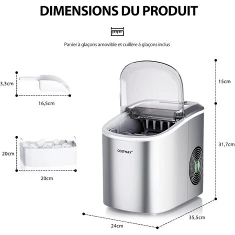 - 【Fabrique à glaçons performante :】cette machine très efficace produit 9 glaçons en 6 minutes. Elle assure 12 kg de glace en une journée, l’idéal pour accueillir une famille ou organiser un petit cocktail.