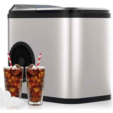 Le réservoir d’eau peut contenir jusqu’à 2,2 litres d’eau et la production peut être démarrée après l’ajout d’eau. Après 6 minutes, les premiers cubes dans le récipient de collecte sonneront. Les fournitures culbutent toutes les 5 minutes, chaque lot en contenant 9. La machine à glaçons peut préparer jusqu’à 12 kg de glaçons en 24 heures et fournit ainsi des rafraîchissements 24 heures sur 24.