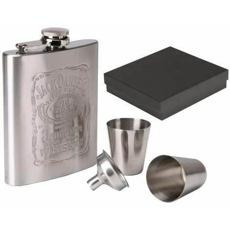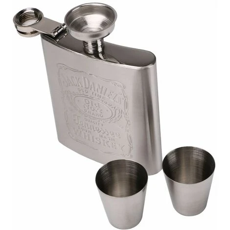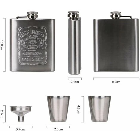 - 2 TASSES ET 1 ENTONNOIR : Il y a un petit entonnoir que on peut le remplir très facilement avec lui, d’ailleurs 2 tasses est équipées ,le tout en acier inoxydable,sa taille est parfaite, elle se range n’importe ou (poches, blousons) sans aucun problème,très pratique à partager de l’alcool avec vos amis n’importe quand et n’importe où