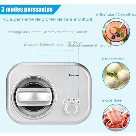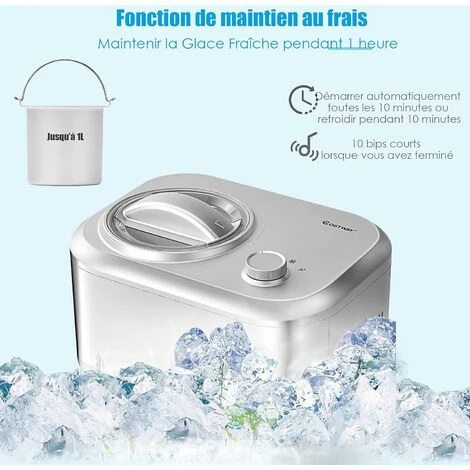 - Un résultat rapide: Avec son compresseur intégré et sa puissance de refroidissement de 100 watts, notre machine vous prépare jusqu’à 1 litre de glace, sorbet ou yaourt glacé à votre goût en 40 minutes et sans pré-réfrigération. Votre glace est prête en un court instant.
