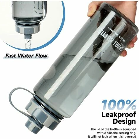 Matériel Écologique: La grande bouteille d’eau est faite d’un matériau de qualité alimentaire. Cela ne nuit pas à notre corps et respecte l’environnement. 100% étanche und aucun goût « plastique ».