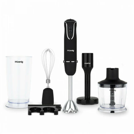 Accessoires : fouet amovible en acier inoxydable, bol gradué de 500 ml, verre gradué de 600 ml, accessoire pour purée, hachoir,support mural