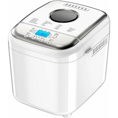 - 19 programmes possibles avec cette machine à pain : basique, baguette, pain complet, pain blanc, rapide, pain sucré, sans gluten, pâte, confiture, gâteau, sandwich, spécialité, cuisson, fait maison, yaourt, pétrissage…