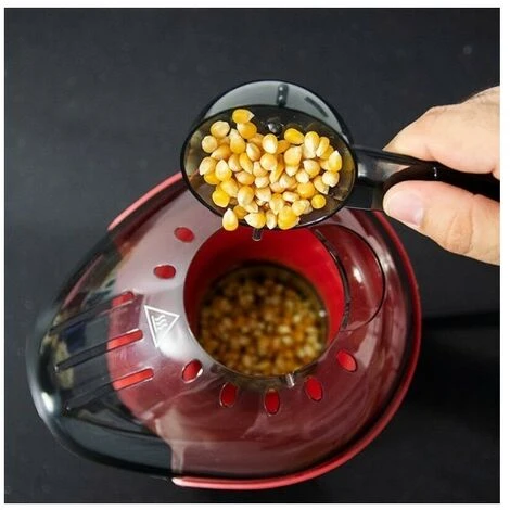 Machine à pop-corn à convention avec 1200 W et une cuillère doseuse. Pop-corn prêt en 2 minutes. Machine à pop-corn de 1200 W de puissance. Fonctionnement par convection : elle transfère l’air chaud à partir d’une résistance halogène. Pop-corn prêt en seulement 2 minutes. Inclus : une cuillère pour doser afin de mettre le maïs dedans. Système démontable pour simplifier le nettoyage. Protection contre la surchauffe. Machine à pop-corn Coque supérieure Cuillère doseuse Manuel d’instructions