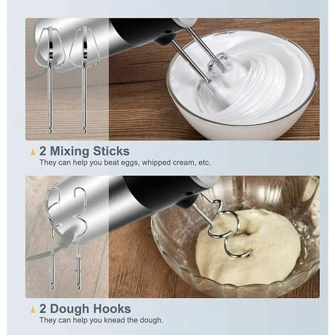 【Fouet électrique à 5 vitesses】Le batteur à main a 5 vitesses réglables, vous pouvez choisir la vitesse appropriée en fonction de vos besoins de cuisson, adapté aux blancs d’œufs, au beurre, à la purée de pommes de terre, etc.