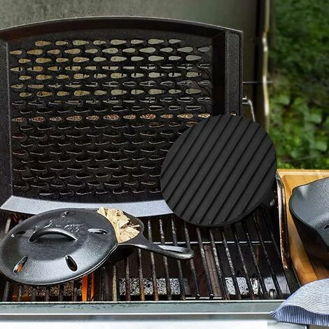 【Excellent gaufrage】La conception de la rainure vous permet de faire un gaufrage exquis sur les aliments grillés, en appuyant sur de délicieuses marques de gril sur les steaks et le pain de viande. Une presse à burger peut aussi être utilisée avec un