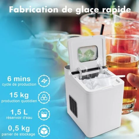 - ★MACHINE A GLAÇONS PUISSANTE★La machine à glaçons haute efficacité de 112 W peut fabriquer 9 glaçons en seulement 6 à 13 minutes (c’est-à-dire que 12 à 15 kg de glace peuvent être produits en 24 heures), vous permettant de profiter de la fraîcheur en été chaud.