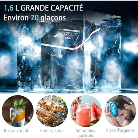 - ★DETAILS HUMANISES★En plus du réservoir d’eau de 1,6 litre de grande capacité, notre machine à glaçons est également équipée d’un panier à glaçons amovible et d’une cuillère à glace pour que vous puissiez facilement retirer les glaçons. De plus, le bouchon de vidange inférieur aide à évacuer l’eau inutilisée tandis que le tampon antidérapant garantit une bonne stabilité.