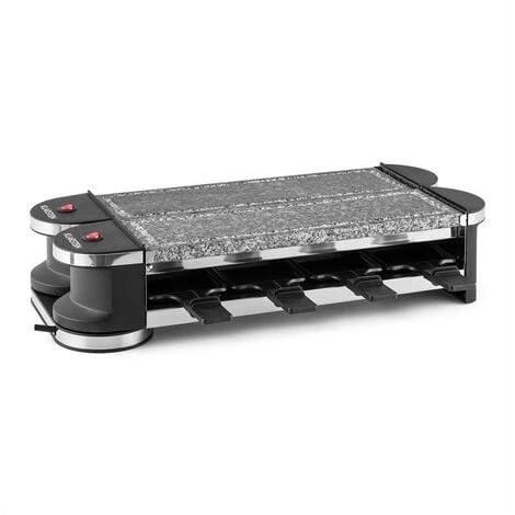 DEUX FAÇONS DE CUISINER : La machine a raclette comporte une large zone de gril en pierre qui agit comme une plaque grésillante pour des délices fondants en bouche. Il y a aussi un gril en fonte d’aluminium à votre disposition, selon vos préférences.