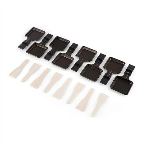 UN SET COMPLET POUR UNE RACLETTE AUTHENTIQUE : Notre appareil a raclette traditionnelle est livré avec tout le nécéssaire. Il est livré avec des petits poelon raclette antiadhésifs et 8 spatules pour servir le fromage et qui sont faciles à nettoyer.