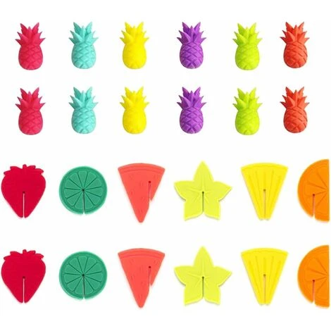 Formes: fraises, pastèque, tranches d’ananas, kiwi, orange et carambole, ananas