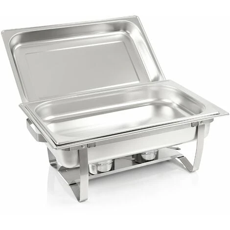 Le set se compose de trois récipients d’eau chaude remplis de deux récipients GN 1/1, un récipient GN 1/2 et deux récipients GN 1/4. En plus des couvercles, six récipients de pâte combustible sont également inclus dans la livraison.